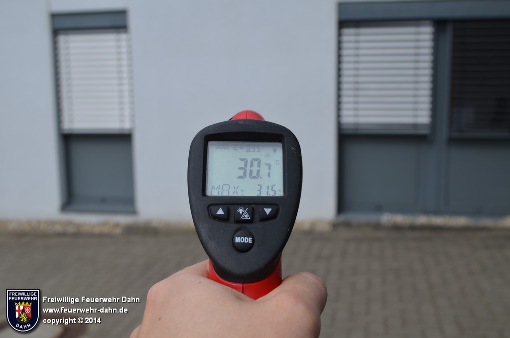 Die Messung der Temperatur erfolgt über berührungslose Infrarottechnik. Das Gerät verfügt über einen Messbereich von -50°C bis +1050°C und ist somit ideal für den Einsatzbereich der Feuerwehr geeignet. Bei dem Gerät können zur Überwachung Alarmwerte eingestellt werden, das heißt wenn die voreingestellte Temperatur überschritten wird, gibt das Gerät Signal. Um auch auf unterschiedlichen Flächen korrekte Messergebnisse zu bekommen, kann der Emissionsgrad eingestellt werden.