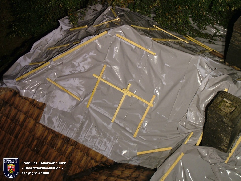 Die Stabilisierung des beschädigten Hauses wurde durch die THW Ortsverbände Hauenstein und Landau in mühevoller Handarbeit in den folgenden Stunden professionell erledigt. In Zusammenarbeit von THW und Feuerwehr wurden am Ende der Löscharbeiten die beschädigten Dachbereiche provisorisch mit Folie abgedichtet, um weitere Schäden durch eventuelle Regenfälle zu verhindern.