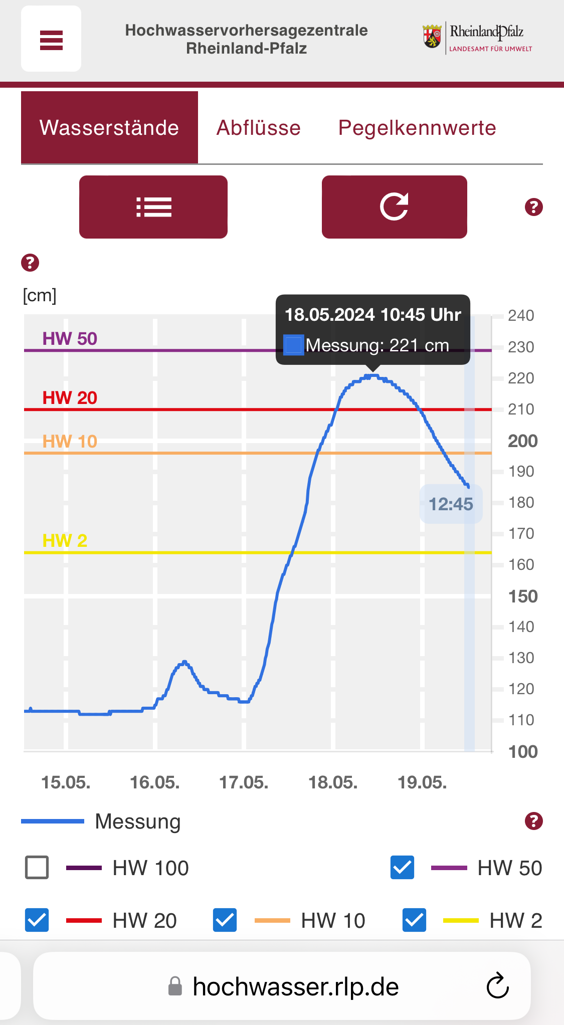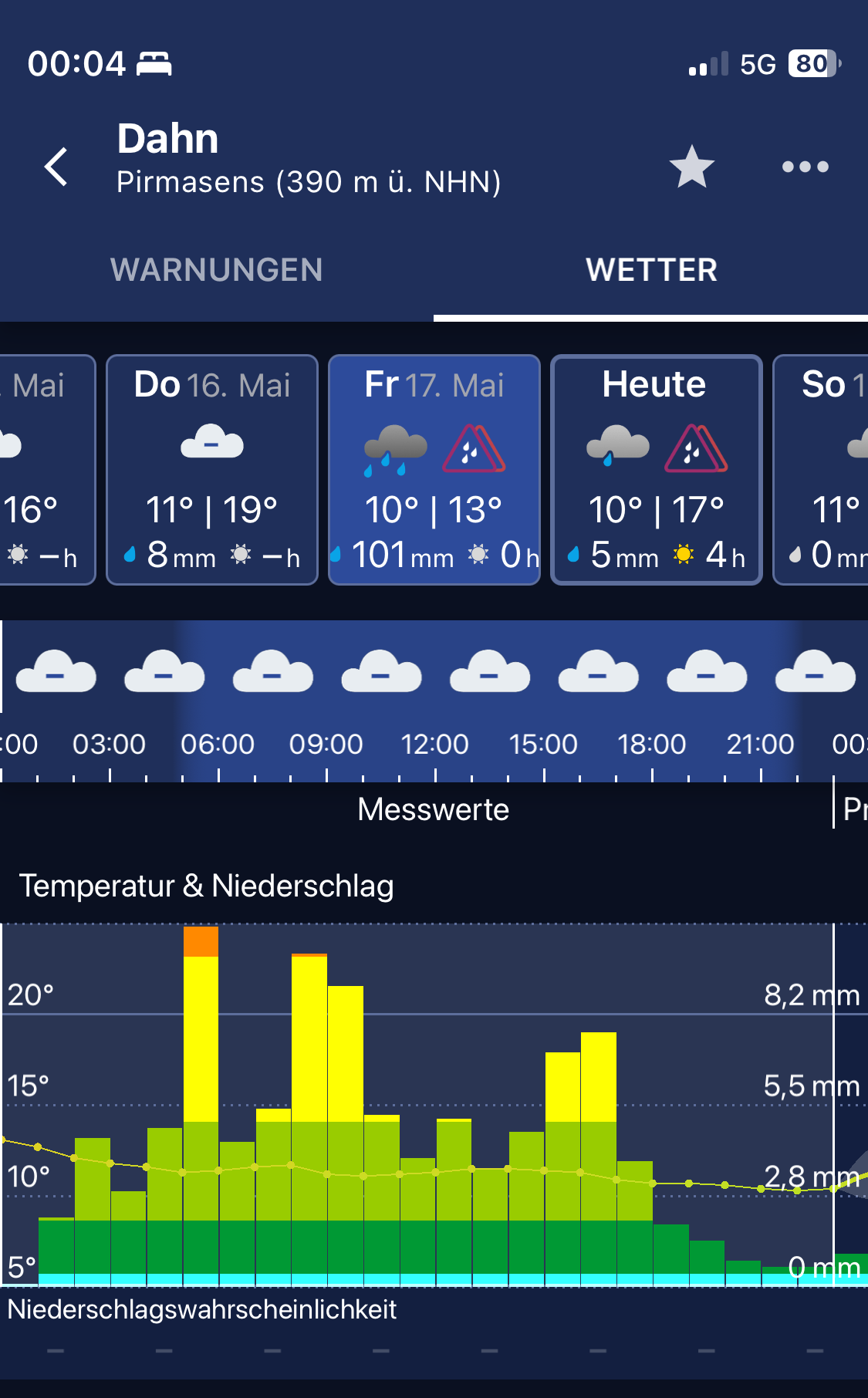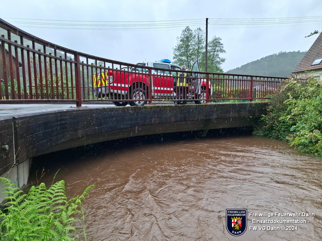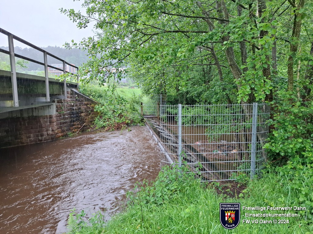 Aufgrund eines Unwetter-Tiefs kam es im Südwesten Deutschlands am Freitag zu örtlichem Stark-/Dauerregen, der in der VG Dahner Felsenland den Pegel der Wieslauter anschwellen lies. Deshalb wurden über den Freitagmittag hinweg alle Feuerwehren in Bereitschaft ver- und die Feuerwehreinsatzzentrale in der Feuerwache Dahn besetzt. Über den Nachmittag, Abend und die Nacht über kam es in Dahn, Busenberg, Bruchweiler-Bärenbach, Niederschlettenbach und Bobenthal zu mehreren Kellern unter Wasser und Bäume über den Fahrbahnen. Die Wieslauter stieg an einer geeichten Messstelle in Bobenthal von seinem Normwert von ca. 1,10m auf einen Wert von 2,21m an. Durch die Besatzung des Kleinalarmfahrzeuges (KLAF) wurden über die gesamte Einsatzdauer regelmäßig alle Brücken der Wieslauter erkundet, um im Bedarfsfall ein Anstauen der Wieslauter jeweils zu verhindern und schneller Maßnahmen einleiten zu können.