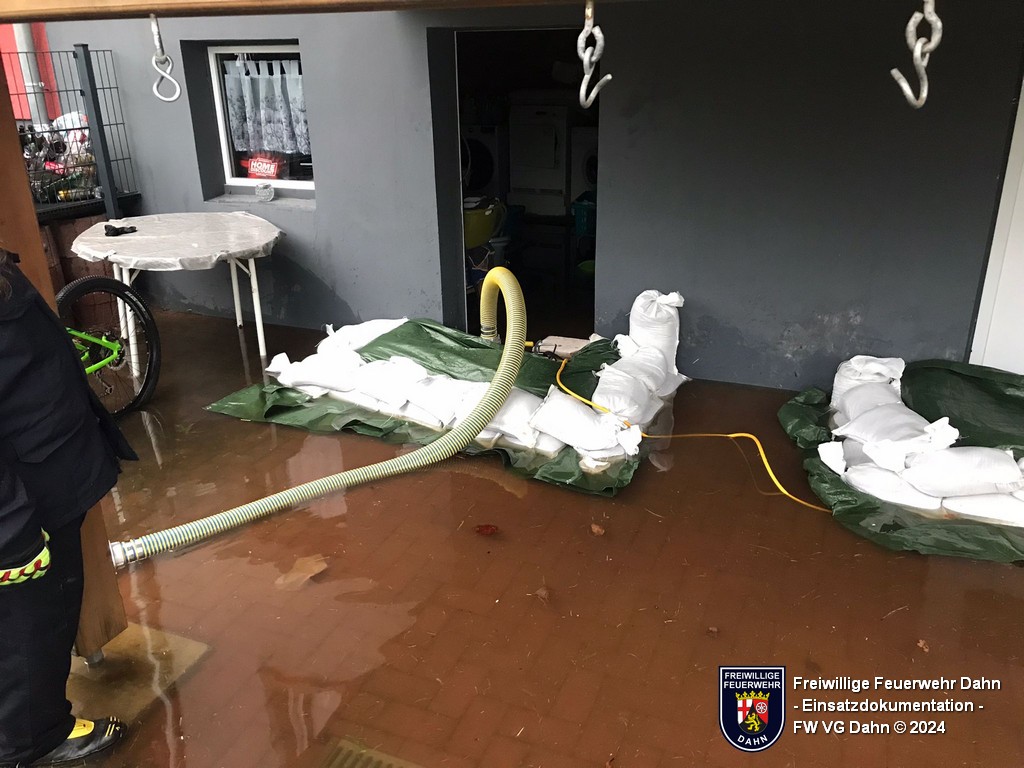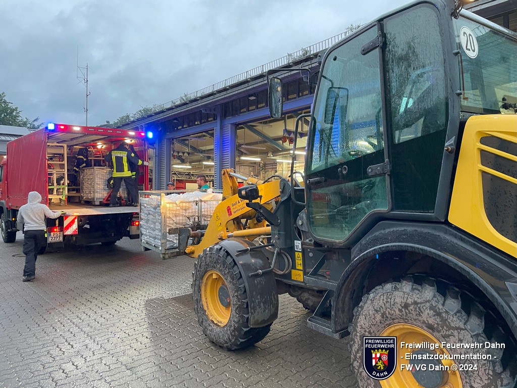 Durch den Landkreis Südwestpfalz wurde nach der Einsatzübernahme eine Technische Einsatzleitung (TEL) aufgebaut, um die Großschadenslage koordiniert abarbeiten zu können. Die VG Dahner Felsenland forderte hierüber 2.000 Sandsäcke an, die vom THW Hauenstein befüllt und angeliefert wurden. Ca. 350 Sandsäcke wurden in Dahn, weitere in Bruchweiler-Bärenbach, Bundenthal, Niederschlettenbach und in Bobenthal verbaut bzw. an Hauseigentümer ausgeteilt, um ein Eindringen des Wasser in Wohnhäuser zu verhindern.