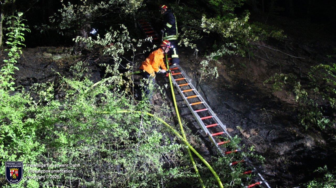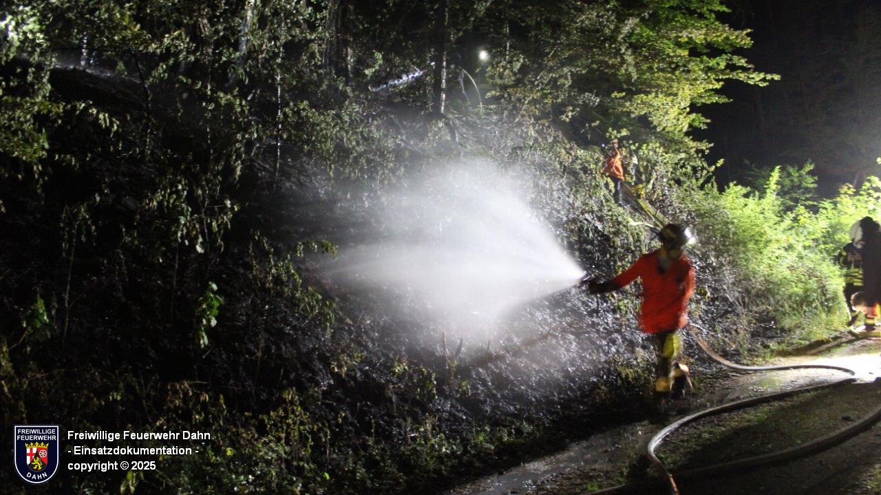 Durch einen aufmerksamen Zeugen wurde ein Waldbrand im Bereich Burg Berwartstein in Erlenbach bei Dahn mitgeteilt. Die ersteintreffenden Kräfte fanden einen ca. 600qm großen Waldbrand vor. Während durch die örtlichen Kräfte ein umfassender Löschangriff gestartet wurde stellten die Tanklöschfahrzeuge aus Bad Bergzabern und Dahn mit einem Pendelverkehr die Wasserversorgung vor Ort sicher. Nach ca. zwei Stunden war der Brand gelöscht.