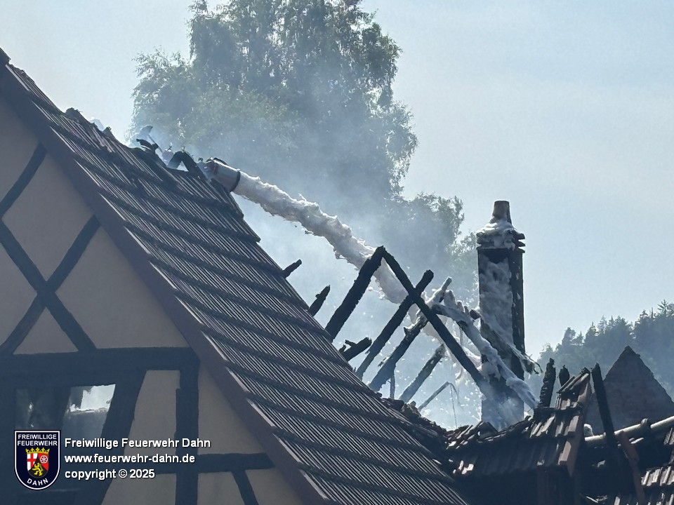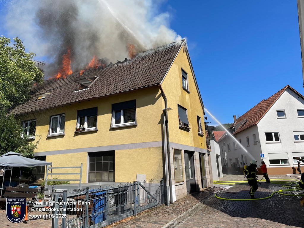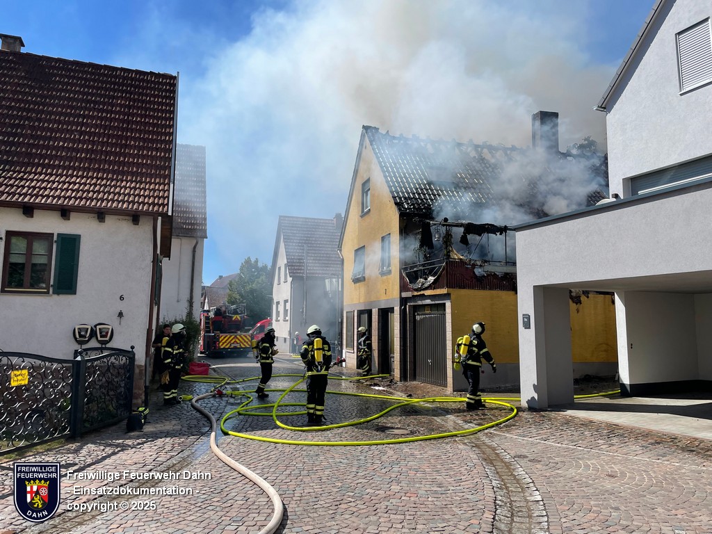 +++ Gebäudebrand in Busenberg - Flammen breiten sich in Dach aus - rund 85 Einsatzkräfte verschiedener Organisationen vor Ort +++
