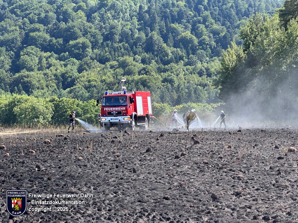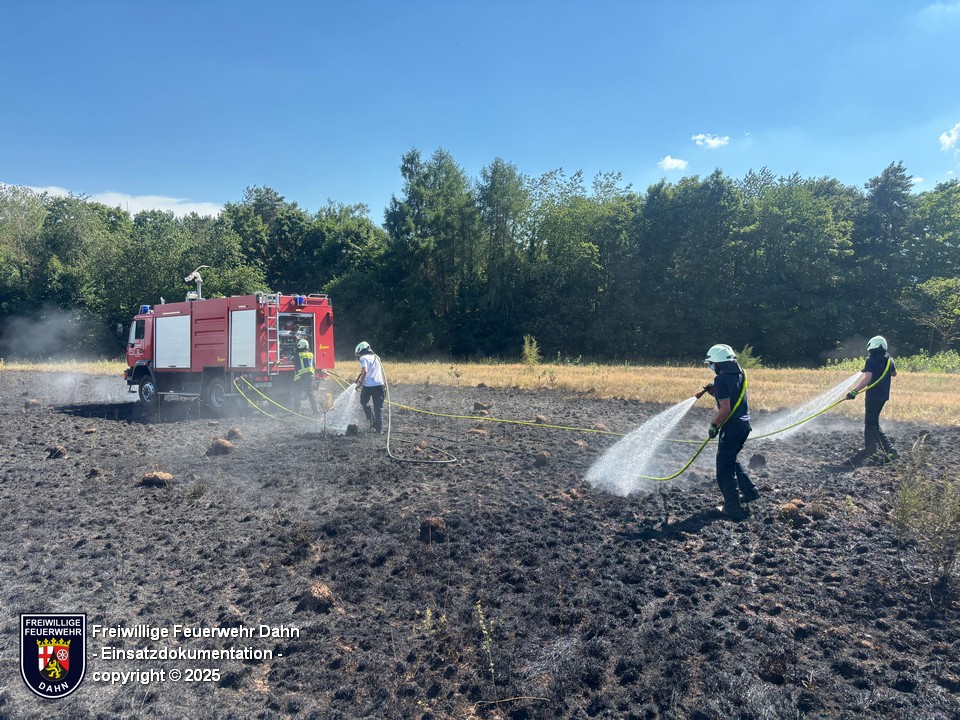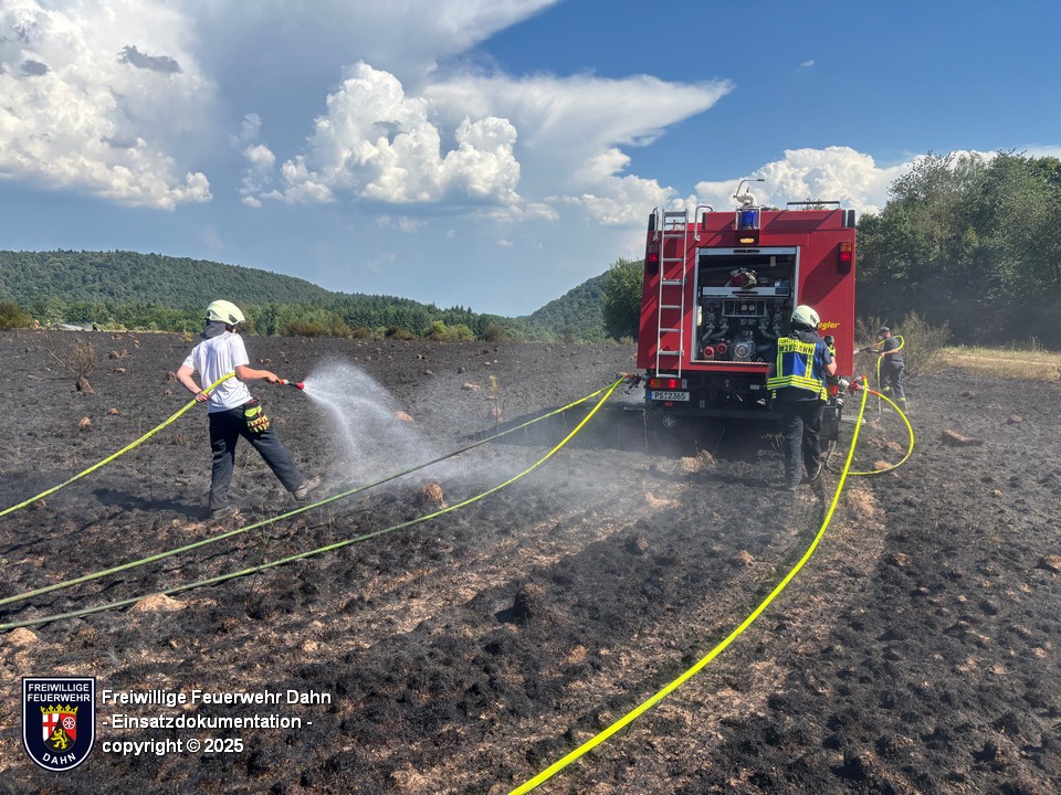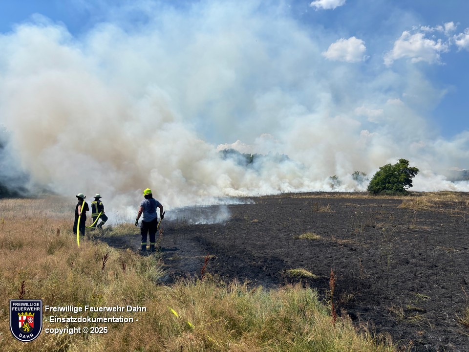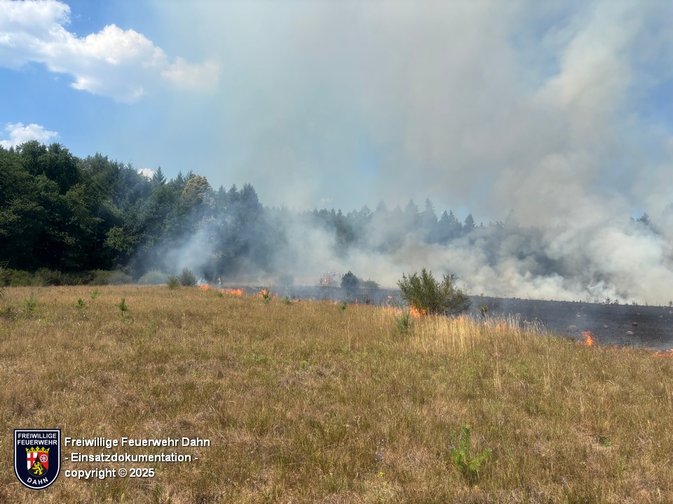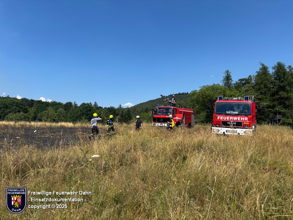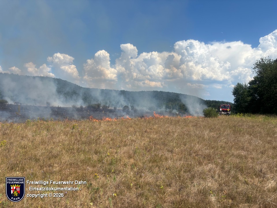 Am Mittwochmittag geriet aus bisher unbekannten Gründen eine Wiesenfläche östlich der Ortschaft Birkenhördt in der VG Bad Bergzabern in Brand. Aufgrund der Brandausbreitung wurden durch die örtlichen Kräfte mehrere Tanklöschfahrzeuge und das dazugehörige Waldbrandmaterial nachgefordert. Aus Dahn fuhren daher das TLF 16/45 sowie das MZF 3 mit dem Rollcontainer Waldbrand in Richtung Bad Bergzabern.