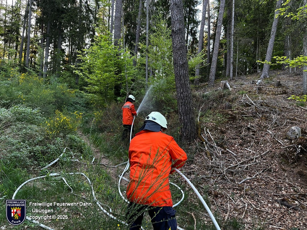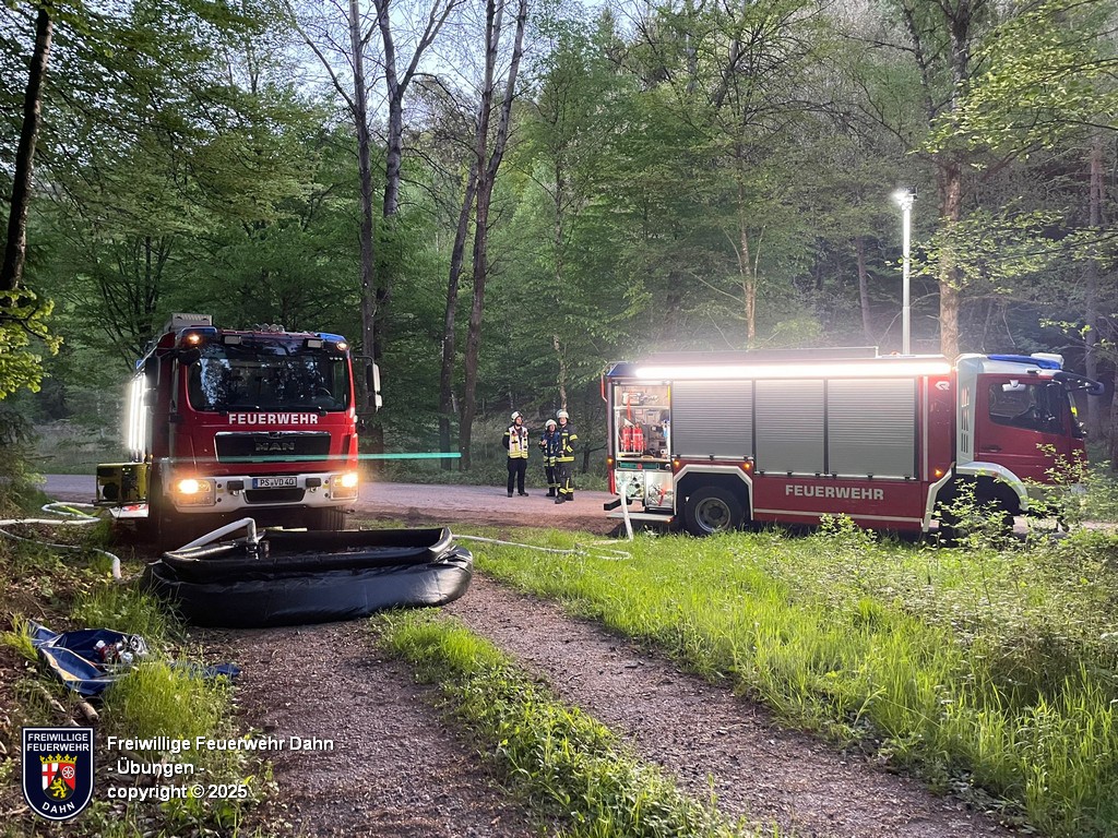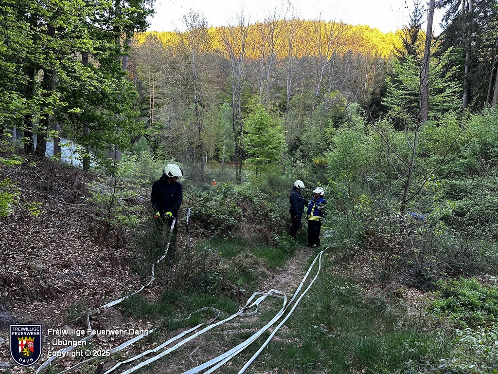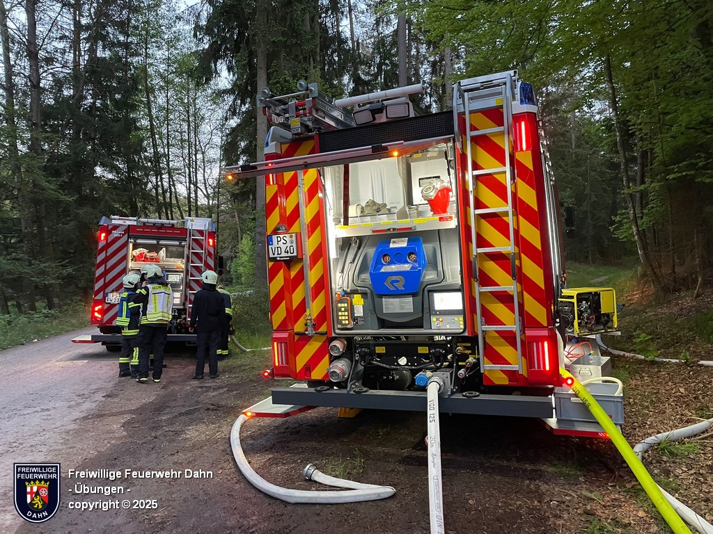 Am Freitagabend fand die zweite Zugübung in diesem Jahr statt, dieses Mal mit dem Themenfeld "Wald- und Vegetationsbrandbekämpfung". Angenommen wurde ein vom Wanderparkplatz Moosbachtal bei Dahn ausgehender und nach Westen in Richtung PWV-Hütte sich ausbreitender Waldbrand.